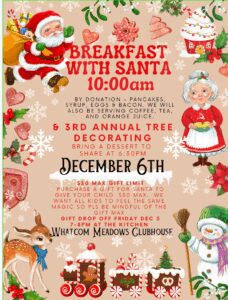 Join us for our Breakfast with Santa and 3rd Annual Tree Decorating event on Saturday, December 6th at the Whatcom Meadows Clubhouse.
