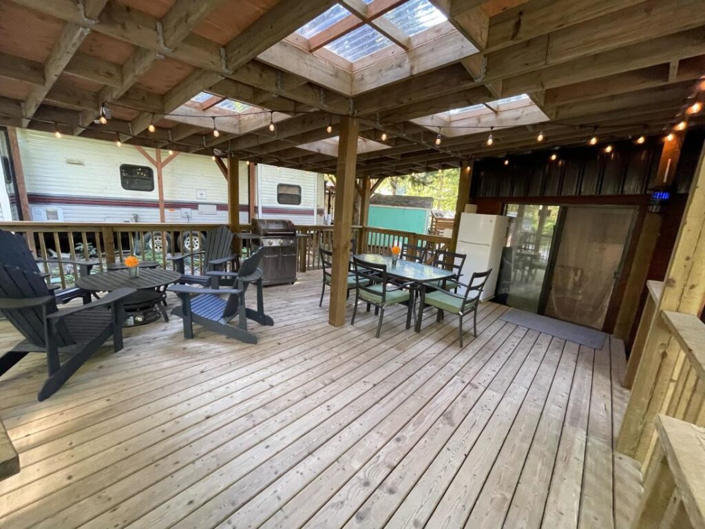 Sale Includes: 1990 Fleetwood Prowler Trailer, 2 custom tip outs, Trailer Port, 200sq ft add-a-room extension, 450 sq foot covered deck, sleeps 6 persons.