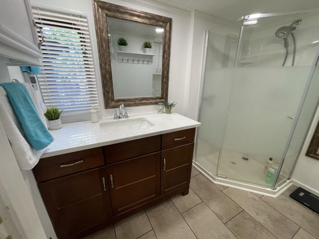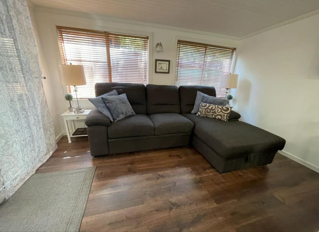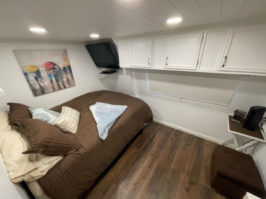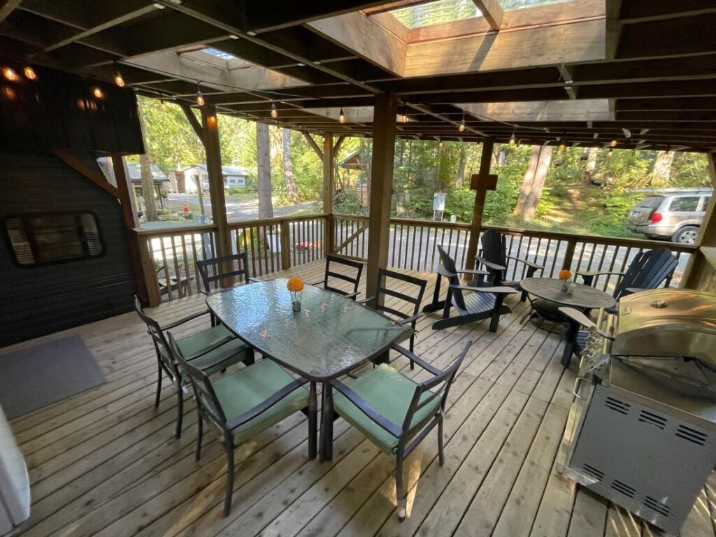 Also included: Built in microwave oven, full-size gas stove with double oven, kitchen Fridge, 4 Bar Stools, comfortable chaise lounge couch that pulls out to a queen size bed, living room side tables, queen bed and dresser in the master, television in the master bedroom, dressers in second bedroom, 6plastic beige Adirondack chairs outside. Dual connect gas connections for bbq and patio heater or gas fire table, done by VanderYacht propane commpany.