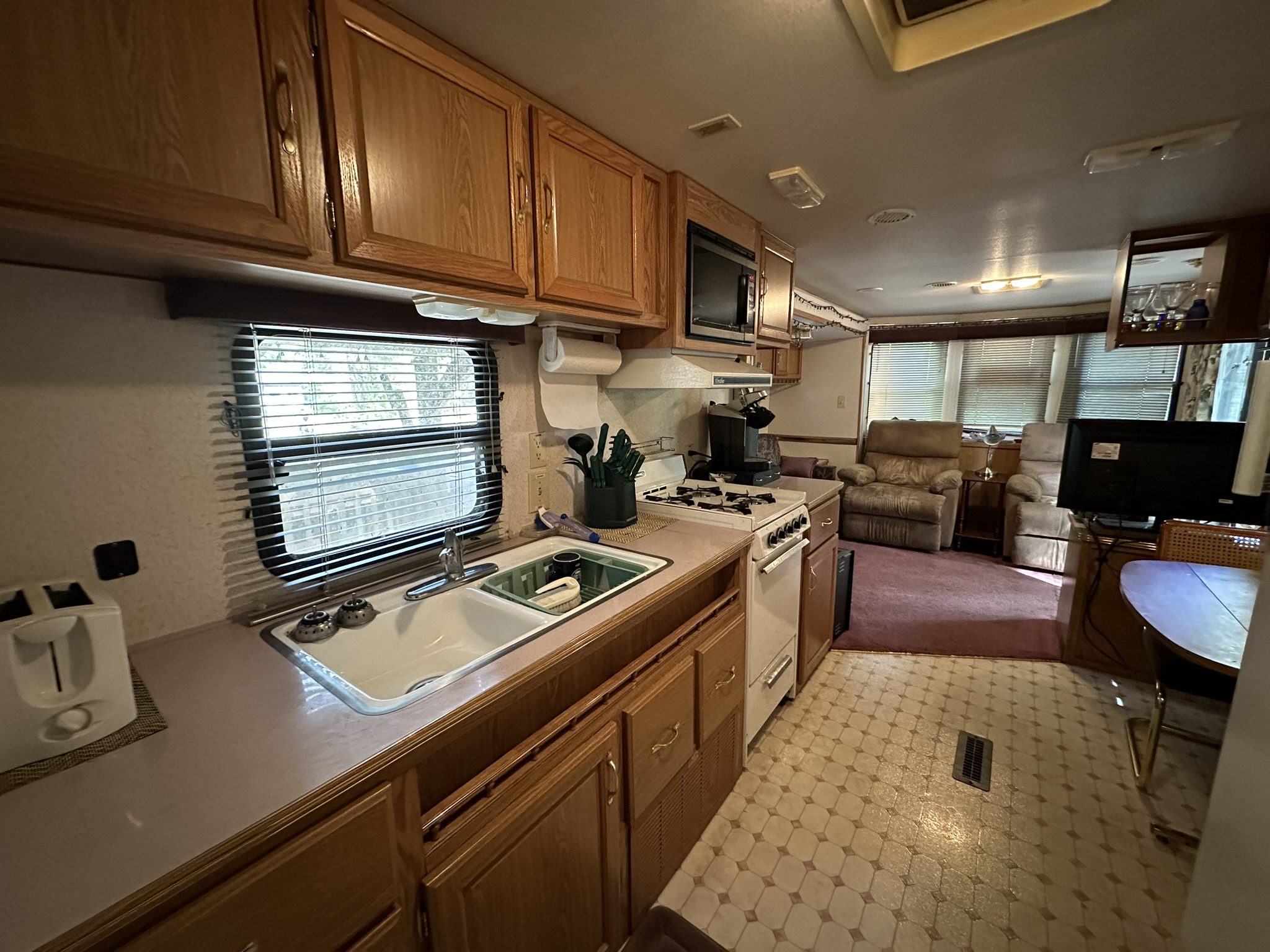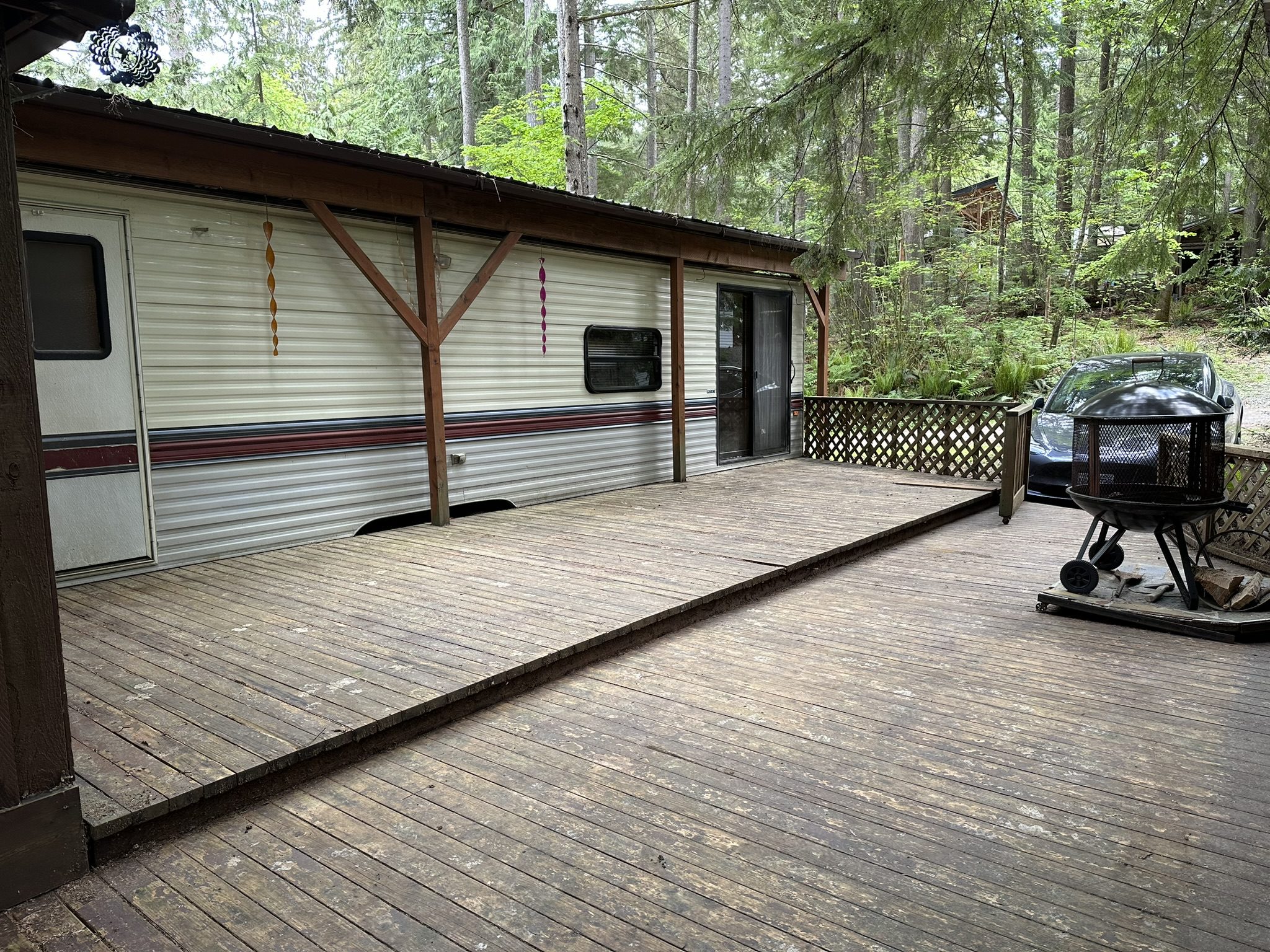 Other Features: Includes: Propane BBQ, Two televisions, DVD players, 2 large recliners, Electric Heater, Fire Pit, Patio table & Chairs. Power, Water, Sewer, Deck, Trailer Roof.
