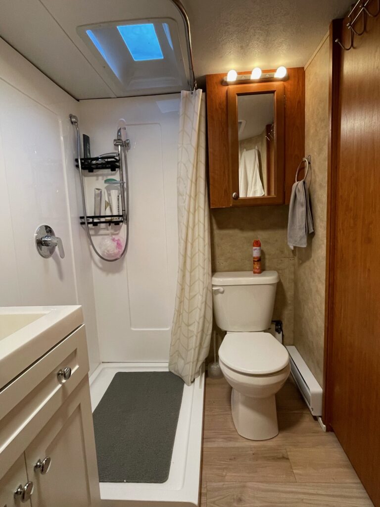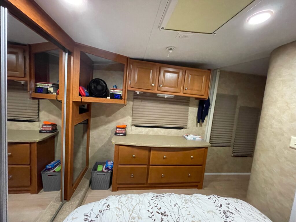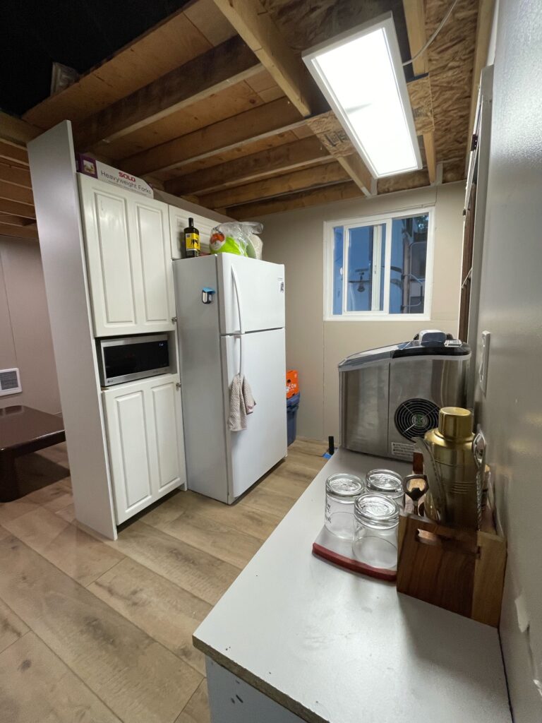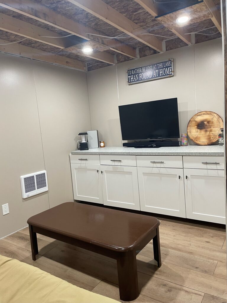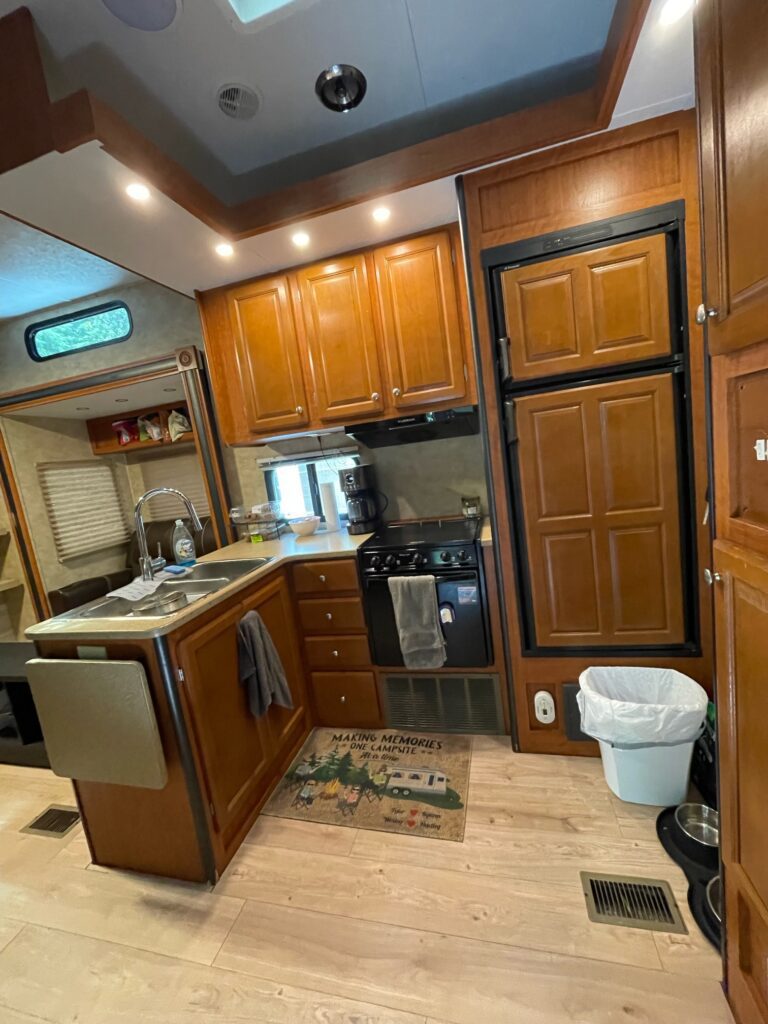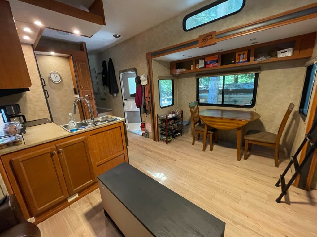 39-foot Forest River Toy hauler located on green space that has been remodeled. Includes a queen size bedroom at the front of the trailer, queen size bedroom in the rear of the trailer and a queen size loft in the middle of the trailer (no mattress in loft). Residential style bathroom includes new vanity, flush toilet and a 32 x 36 shower. Vinyl plank flooring throughout the whole trailer, 240v baseboard heating, and a full-size sink in the kitchen. Newly built insulated 12×16 shed with a 12×8 storage loft, futon, storage cabinetry, TV, pantry, full size fridge and plumbing for a bar sink. Installed tankless hot water last year. Outside is a laundry tub size with hot and cold water for washing large dishes and a tarp covers nearly the entire site to keep you dry during the colder months. Includes golf cart and 1 year old BBQ.