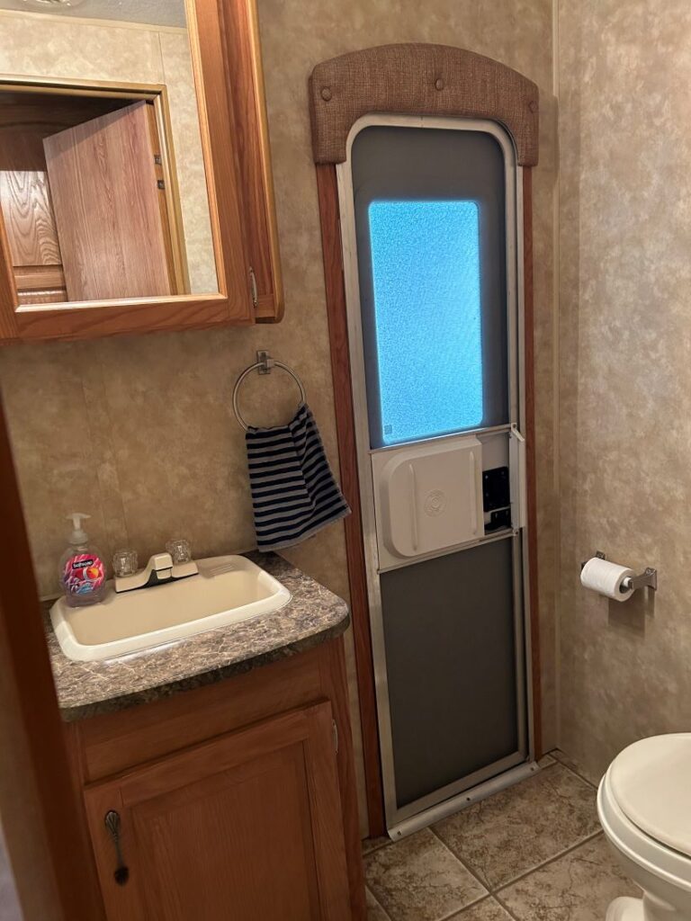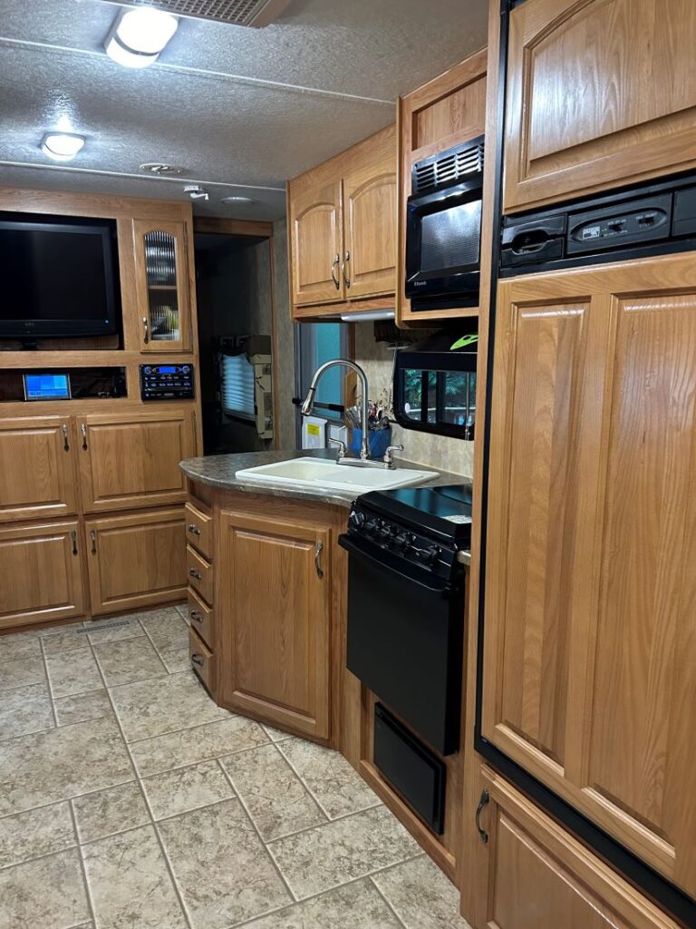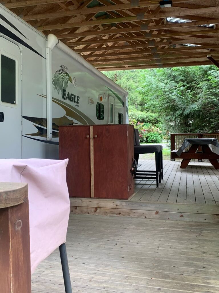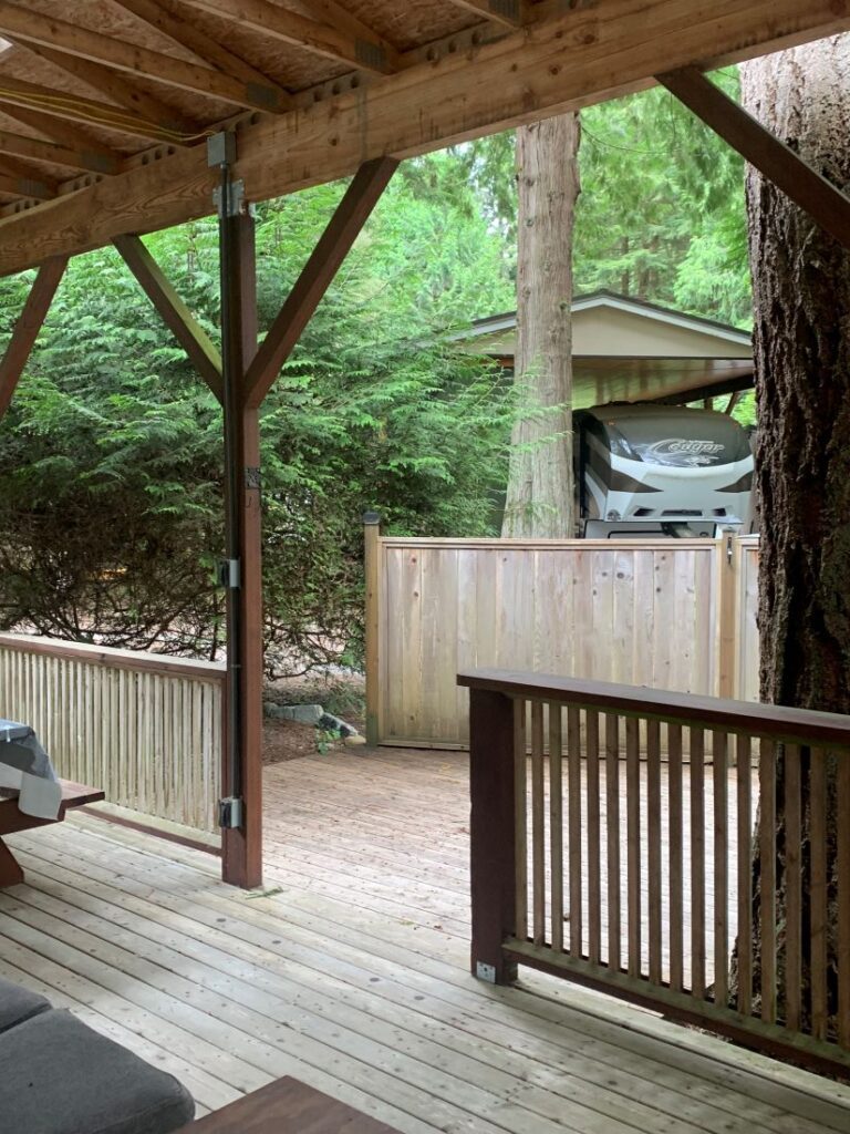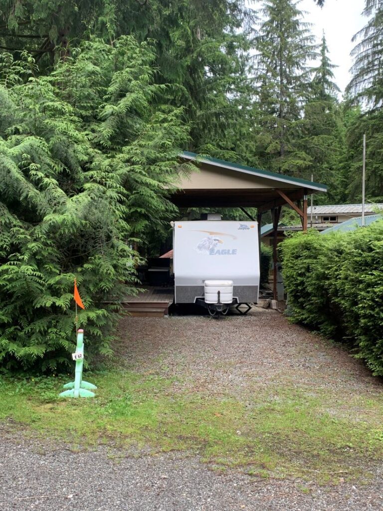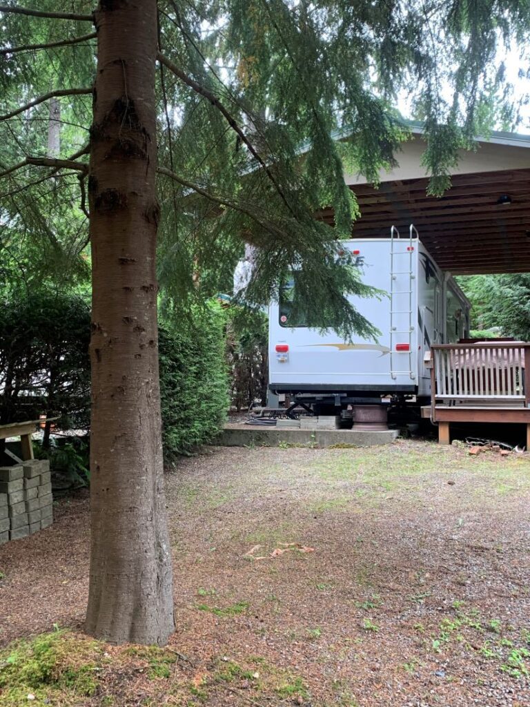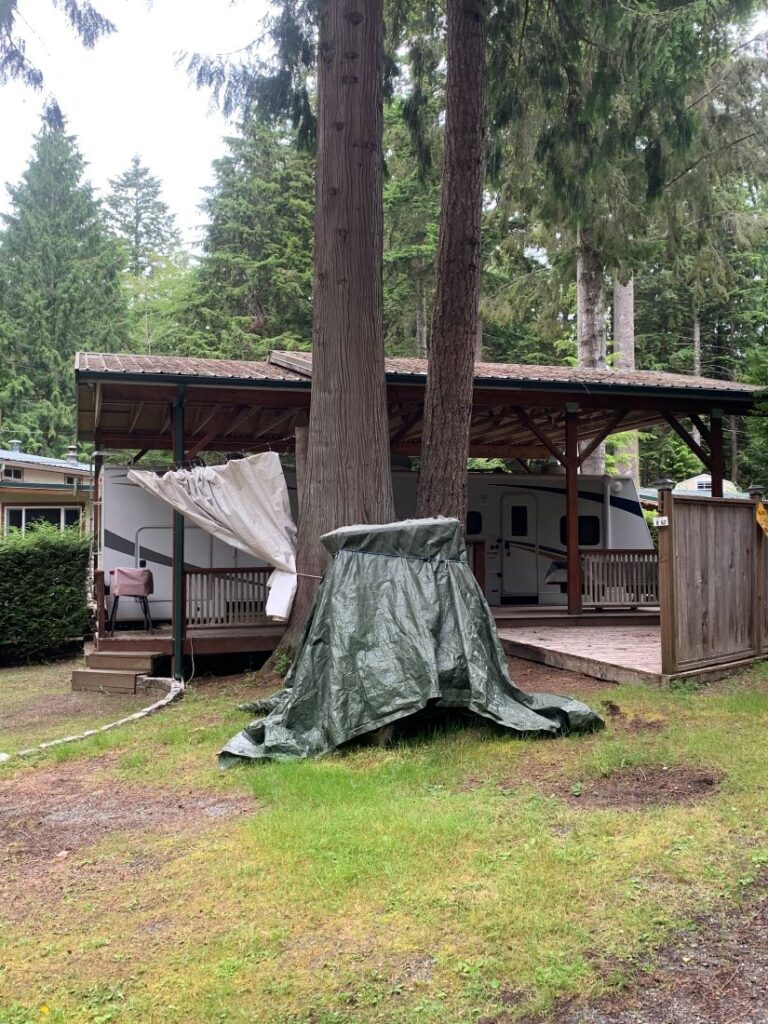 Other Features: 8′ x 10′ Wooden Shed, Power, Water, Sewer, Deck, Covered Porch, Trailer Port & Fire Pit.