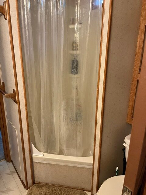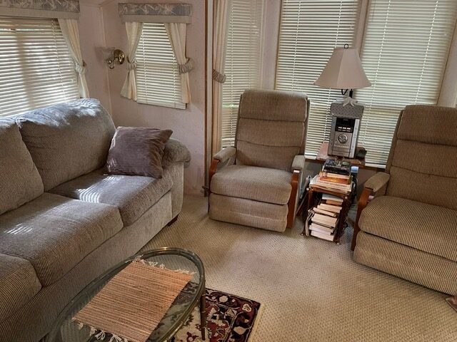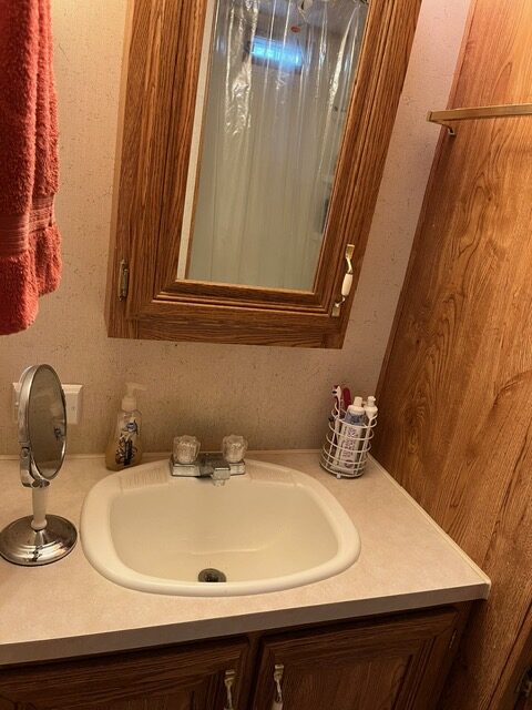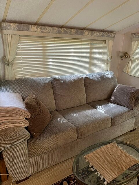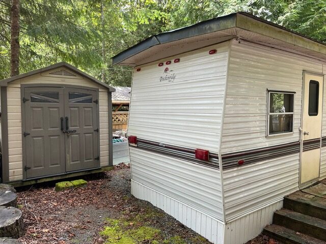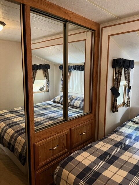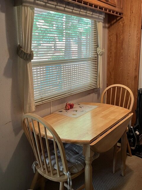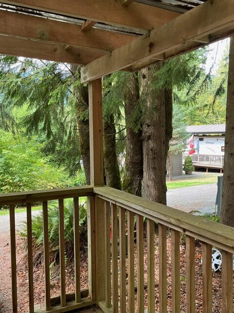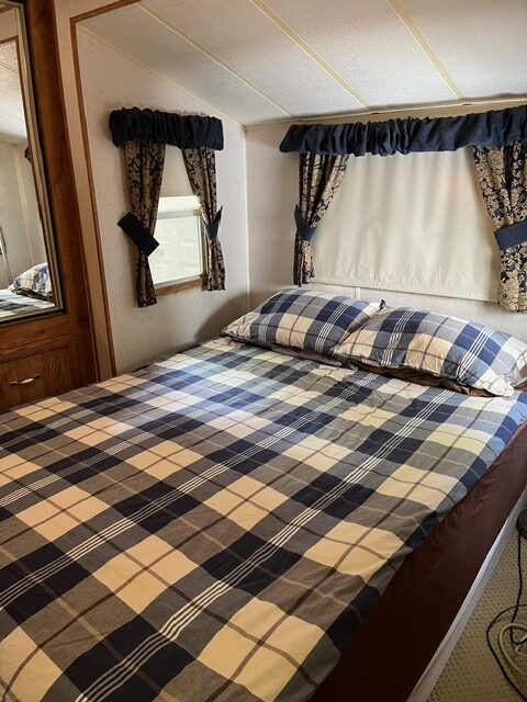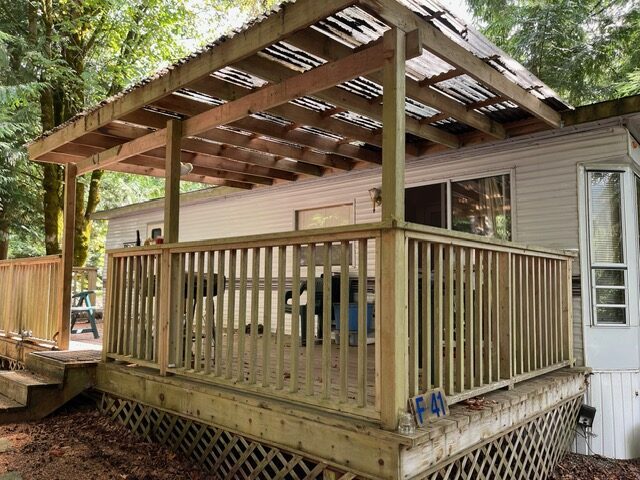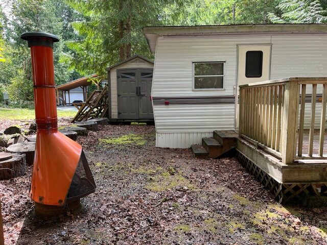 Other Features: 35′ x 8′ Breckenridge Park Model, 1992, Sleeps 4. Power, Water, Sewer, Deck, Covered Porch, Trailer Roof, Skirted, Fire Pit and Propane Fire Pit.