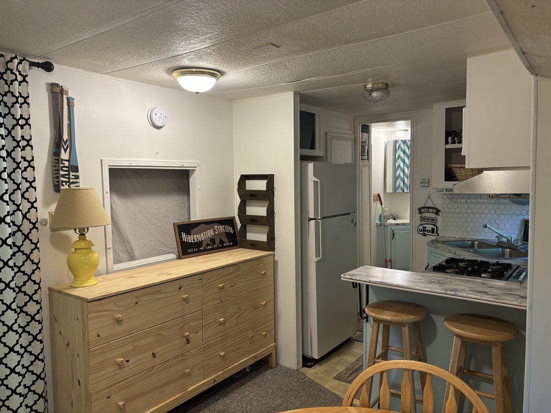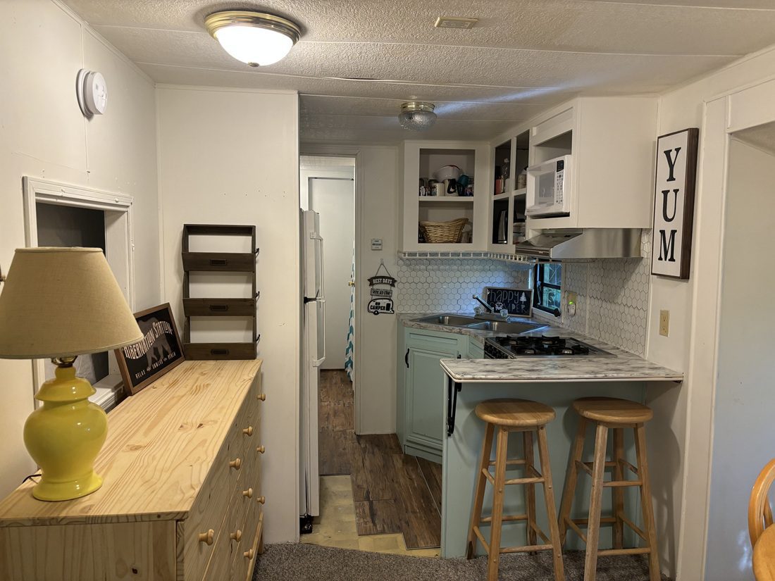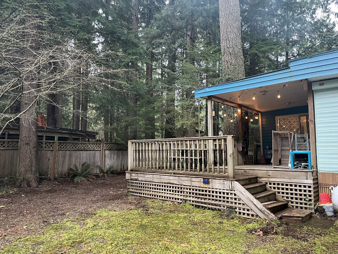 Other Features: Power, Water, Sewer. Covered porch, deck, and trailer roof, firepit area for outdoor evenings, backs onto green space - peaceful and private. Fully fenced with cedar fencing and gate. Majority of furnishings included Sold As-Is.