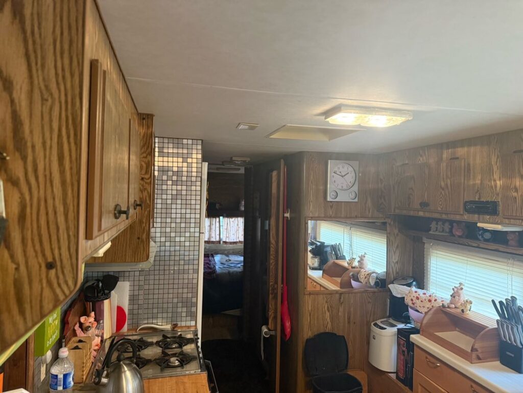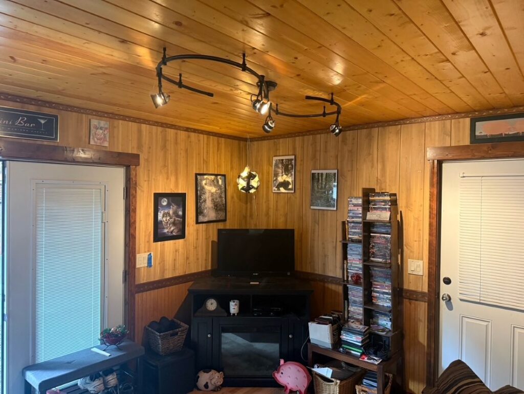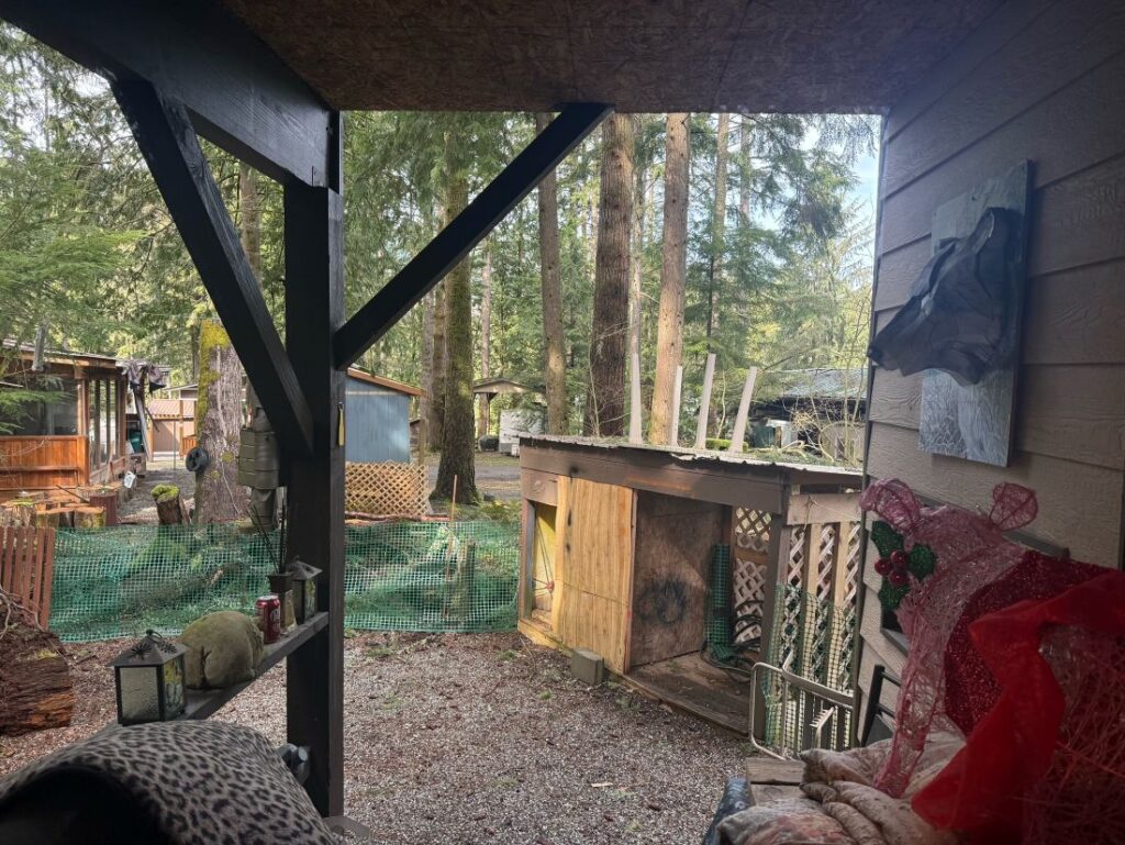 Power, Water, Sewer, Deck, Covered Porch, Trailer Roof, Port, Skirted. Turn key ready for you and your family to come camping in the woods.