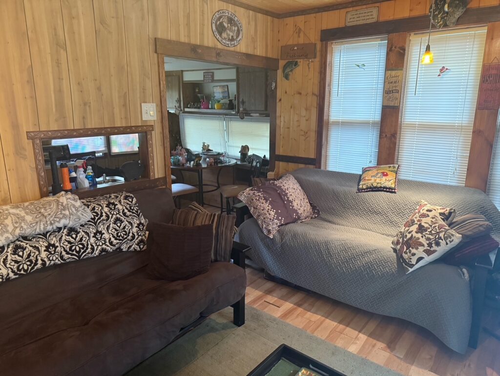 2010 40ft Park Model, Sleeps 4 persons. Comes complete with add-a-room addition on trailer, two 2-6’x6′ Sheds (Wood), golf cart, and fire pit.