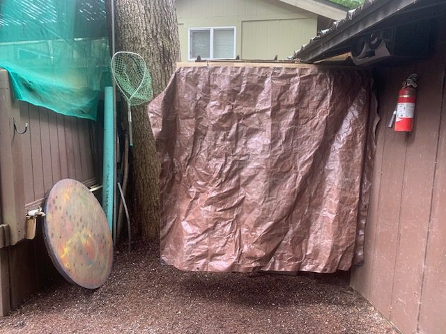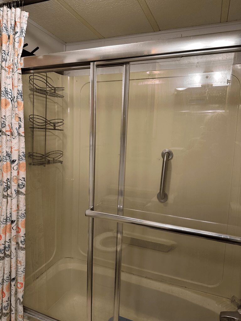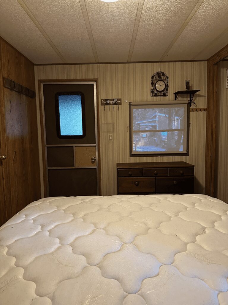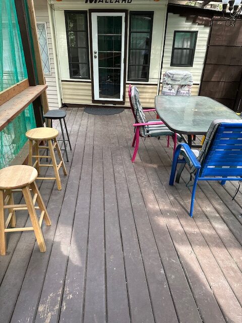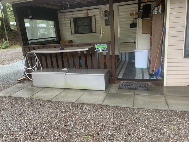 Other Features: Power, Water, Sewer, Covered Porch, Trailer Roof, Skirted, Fire Pit and Wooden Shed.